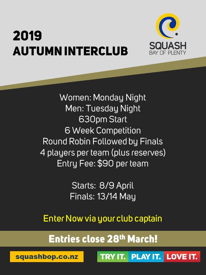 The Autumn Round starts on 9 April and is a shorter 6 week competition. The premier league which normally runs alongside it, will be delayed in an attempt to entice top players back to interclub. We are also trialing a 630pm start to somewhat alleviate late nights.