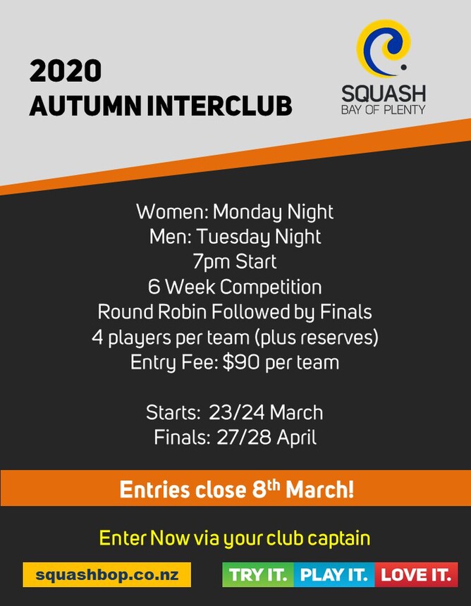 The format is the same as last year, with the 6-week Autumn round starting a couple of weeks early on 25 March. Entries are open in iSquash. If you are keen to play, contact your club captain today to put your name down.